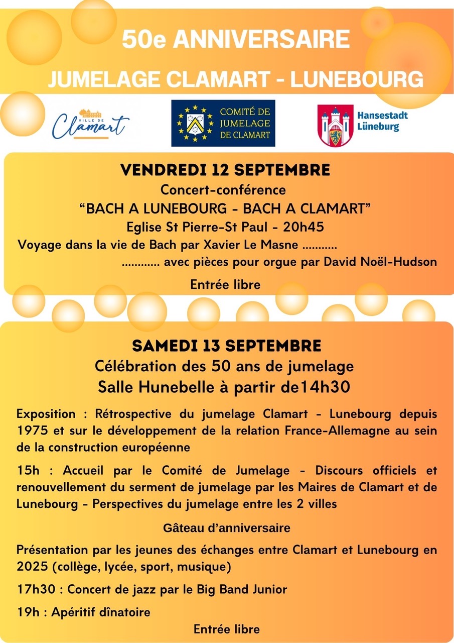 Venez célébrer le 50e anniversaire du jumelage Clamart – Lunebourg, en présence de M. Coscas, Maire de Clamart, et de Mme Kalisch, maire de Lunebourg!!